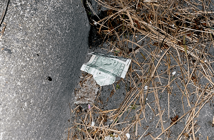 Unfortunately, despite searching the area, we couldn’t find the other half. Technically, if you have more than half of a bill, it can be counted as legal tender, but with this one, it would be hard to tell. We could probably meticulously calculate the area and compare it to a whole dollar bill and present it to the U.S. Bureau of Engraving and Printing, but in the end, it is only a dollar. Now, if it was a twenty, we might consider it.
