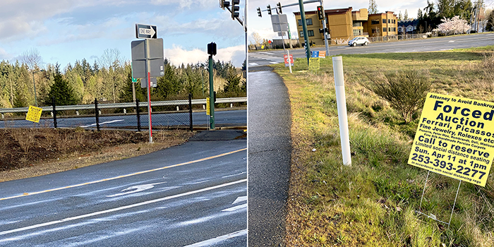 Someone planted a bunch of signs around the freeway ramps and down Juanita-Woodinville Way.