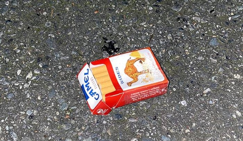 Also, at the park-and-ride, a mostly full pack of cigarettes.