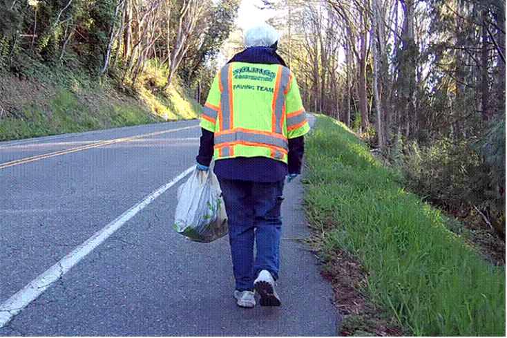 It was even warmer today at 44°F (6.7°C). We will dress cooler tomorrow. Cooler in the temperature sense. We always look cool in the fashion sense with our jeans and matching Salinas Construction Paving Team vests.