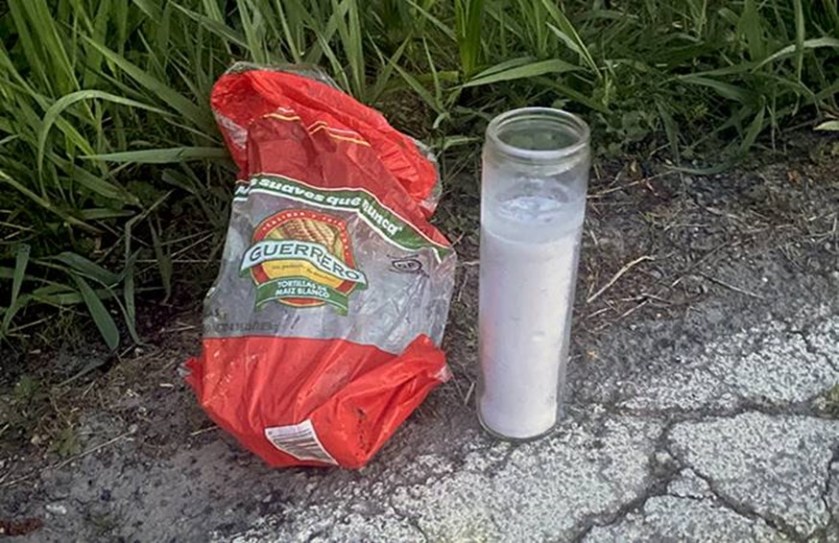 Last Saturday, we found a Dollar Tree store bag with a melted candle in it. Today we found a tortilla bag.