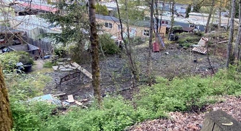 Last week, we crawled into nearby bushes to pick up trash that someone, most likely residents of the trailer park, dumped, so we picked it up. Today, in the same spot, there was fresh trash.