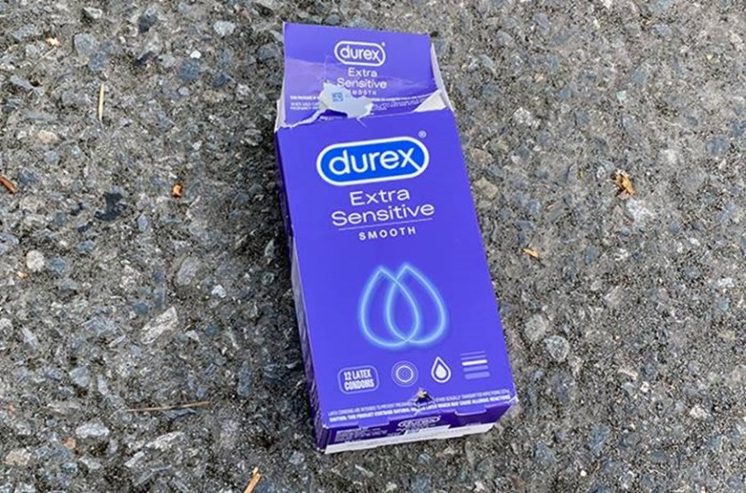 An empty carton of 12 condoms. Gotta admire the guy.