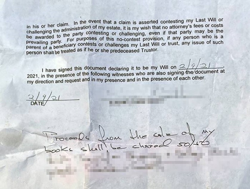 We found someone’s Last Will and Testament.