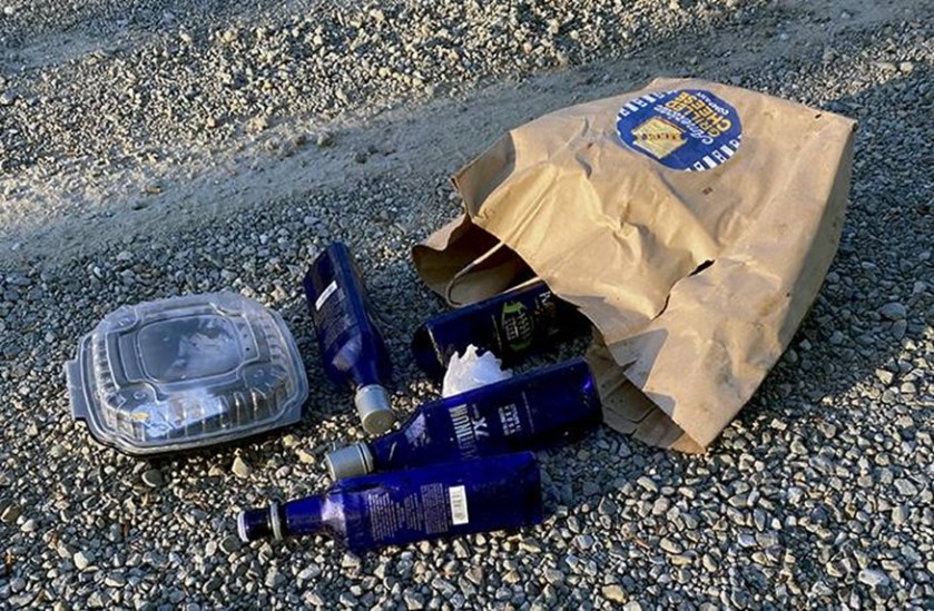 We pass a deep ditch near the intersection of 160th and Brickyard road and often see beer cans and other trash. We have picked it up several times, but today we saw the reason.