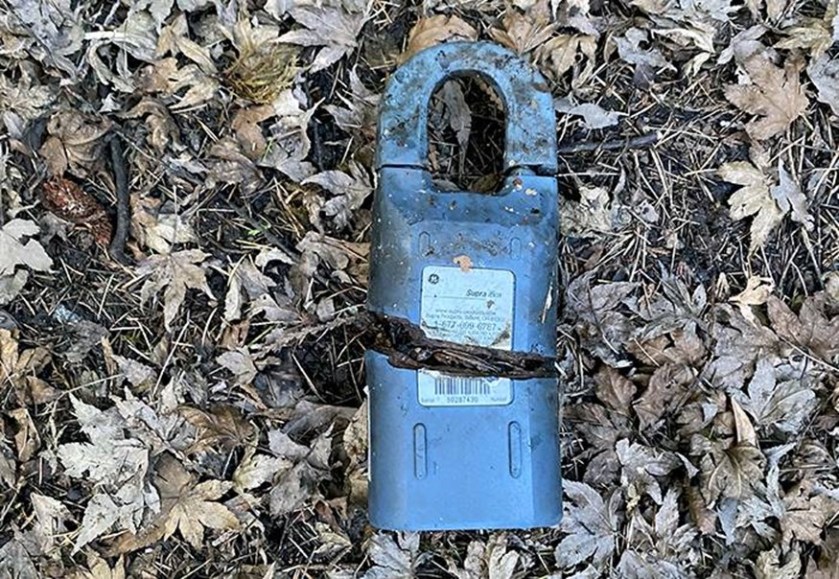 Someone did their best to hack, literally, into the box to no avail, and in frustration tossed it into the bushes. We may sell it back to the company for advertising purposes showing how secure their boxes are. Or we may attempt to hack into it ourselves.