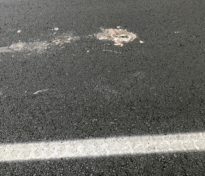 The roadwork on Junita-Woodinville Way is underway. They put the first layer of new pavement down on a short stretch. And, of course, a small opossum decided it wanted to be the first to perform quality control on it.