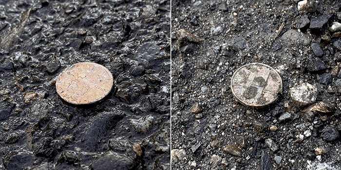 When the glass is full, we count the money and roll the coins. As of today, counting the quarter we just found, we have a total of $321.79. Not bad for six years of walking. Well, actually, it is bad. And no, we are not going to calculate our hourly wage again. In the past, we have found a smattering of Canadian coins, but this year, only one penny. Another casualty of the Covid border lockdown.