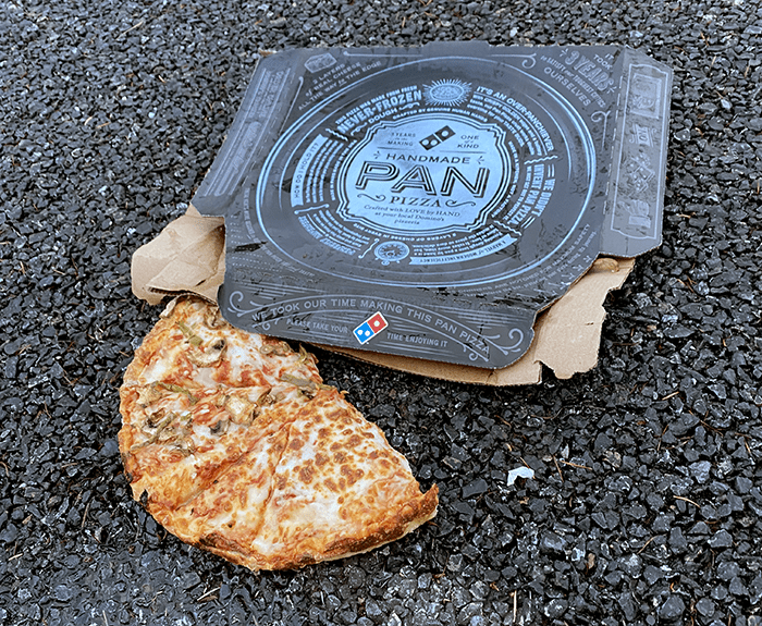 The pizza must not have been that good since they left half of it. The box states “It took three years to satisfy our toughest critics: Ourselves.” Perhaps they should look for some more critics.