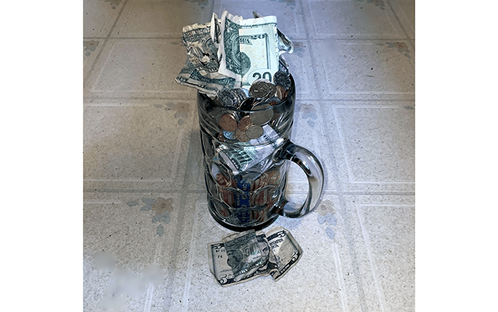 Long ago, we found a one-liter Hofbräuhaus souvenir beer stein and use it to toss our found money in. However, our cup runneth over.