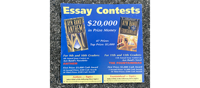 Unfortunately, it appears to be for 1996. But there is a contest this year for Atlas Shrugged which we have read. First place is a ten-thousand-dollar prize. We could enter the twelfth-grade category.