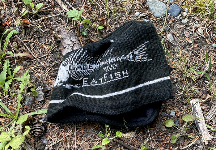A fishing cap, this one for eat fish, but they make similar ones for eat crab. We would have preferred crab, but we will keep an open mind and see how this hat tastes.