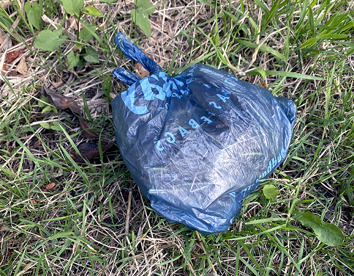 No, not that kind of grass, real grass. It was a dog-poop bag with ninety percent grass. By volume, not by weight. Very weird.