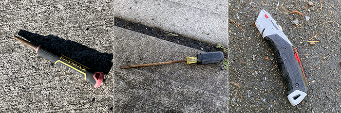 A punch, a screwdriver, and another utility knife. The punch and knife were in great condition. The screwdriver, not so much. It didn’t make it into our found tool collection.