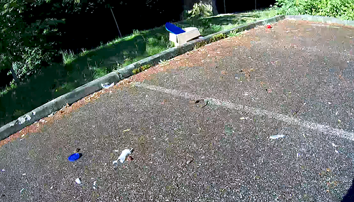 Someone did kick the screen in, so I guess you could call that progress. And yes, we did pick up the littered napkin.