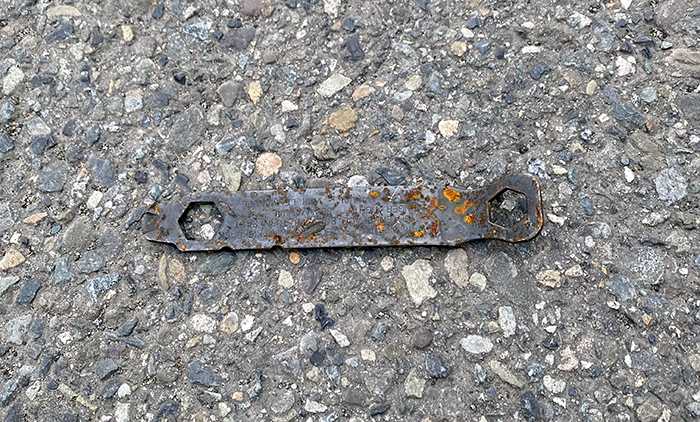It looked cheap and was rusty, but it was a Skilsaw blade tightening tool. Eight bucks on Amazon. So that’s worth something, if you have a Skilsaw, which we do not. So, it is still a cheap, rusty tool to us.