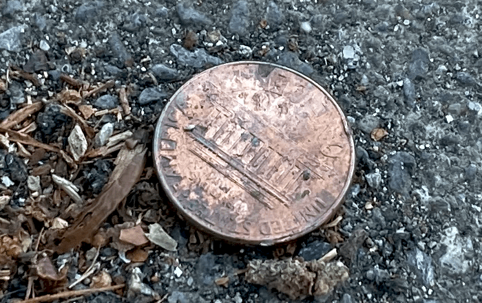 A relatively undamaged penny. So nice to know we will not be shut out this week.