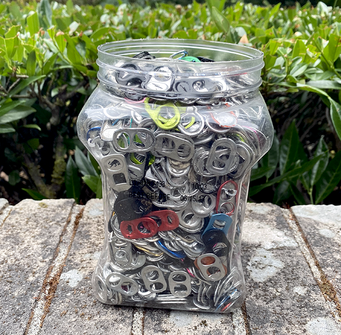 We collect pop tabs from the cans we pick up and our jar is full again.