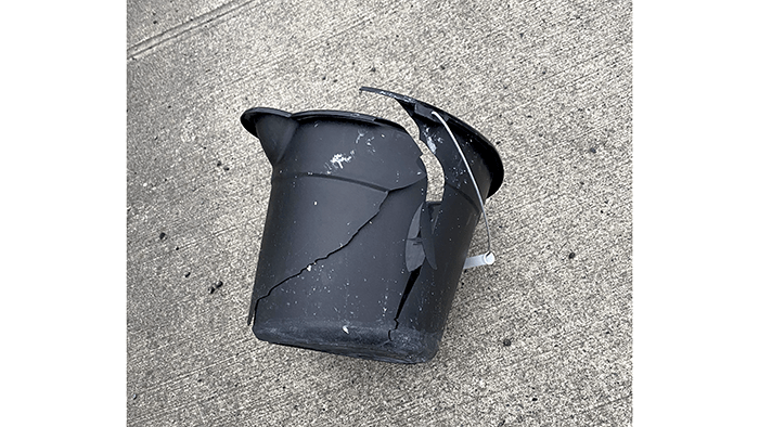 We had to tear and fold the bucket up because the Metro placed some straps over the opening to keep people from throwing in things like buckets.
