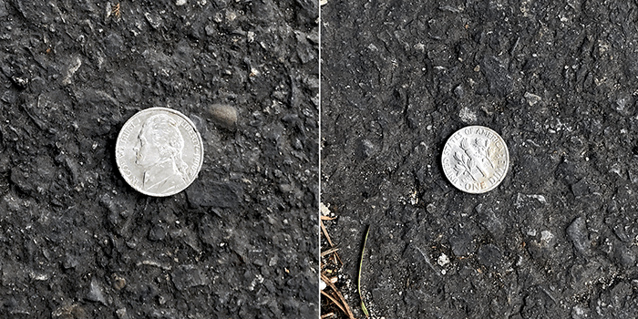 This morning was much more comfortable at 66°F (19°C) so we did walk. We removed a baby crow from the road. It probably did not know how to dodge cars yet. However, we did find money.