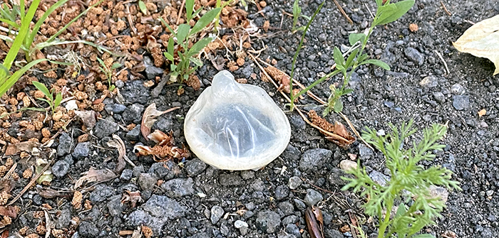 We did find a condom along the well-travelled Juanita-Woodinville Way.