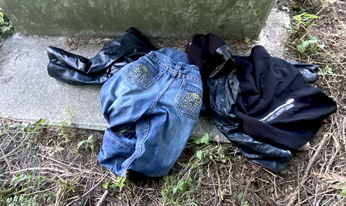 Girl’s jeans, a pseudo-leather jacket and a shirt. If the clothes we find are in good condition, they are washed and sent to Goodwill. Unless, of course, we want them. These were not our size nor our style.