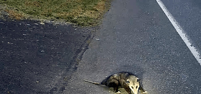 It was wandering around, walking in circles. As we approached, we expected that it would run away, but it seemed to ignore us. We now suspect the opossum was blind because it seemed oblivious to us.