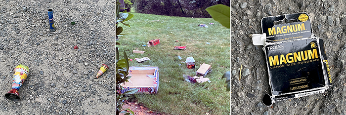 Then, in the center was a side yard where someone set off a bunch of fireworks, several of them illegal even without the ban. This is a heavily wooded area.