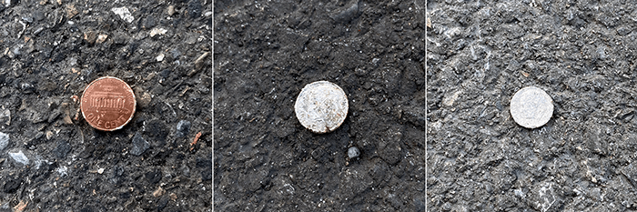 Two dimes and a penny. The dimes were a few feet apart so probably part of the same coin spill. We looked around but did not find any more. That makes twenty-two cents for the week.