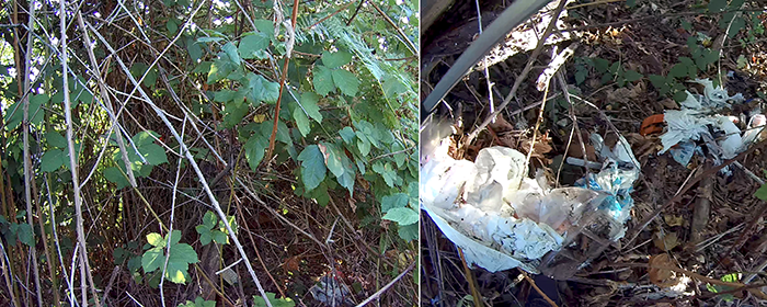 For the last few Saturday walks, Janet has been eyeing a bunch of trash in the middle of a bunch of thorny berry bushes and decided it was time to take action.