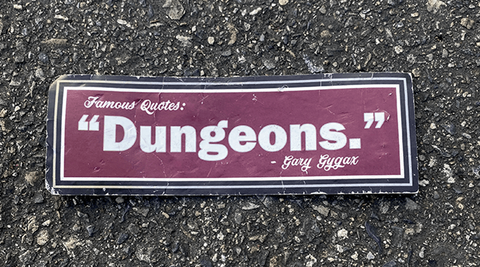 Okay, it doesn’t sound very famous to us. “Give me liberty or give me death,” we get. But “Dungeons?” After some researching, Gary Gygax was designer of the role-playing game, Dungeons and Dragons. He died in 2008. If he had lived, perhaps his next quote would be “Dragons.”