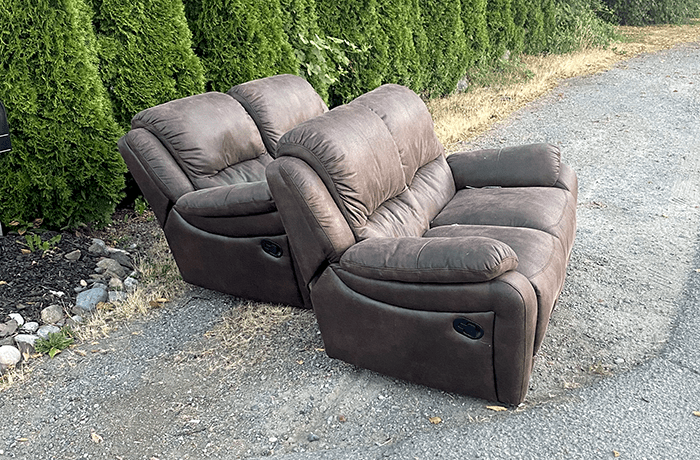Near the beginning of our walk, we passed a house that often leaves “free” stuff near the street, and generally it disappears. Today there was a matching set of sofas.
