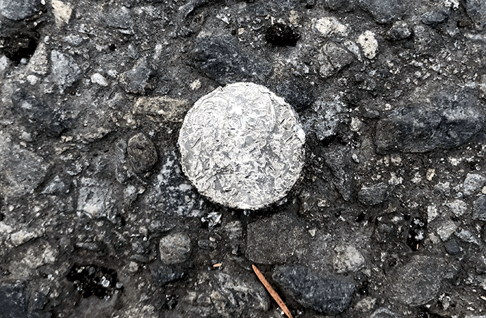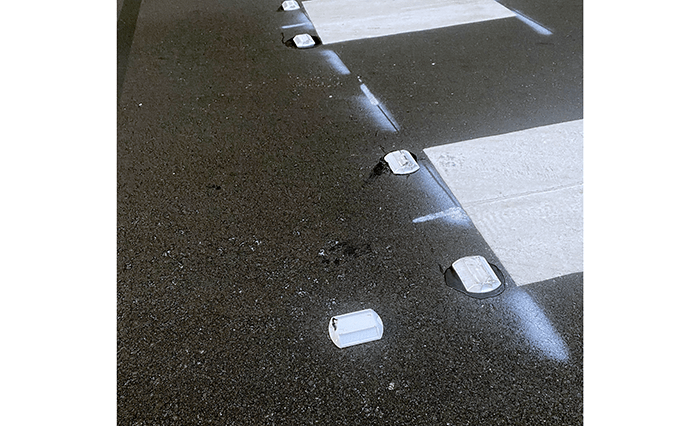The construction crew along Juanita-Woodinville Way repaved and set up new crosswalks. One of the markers immediately came loose. Good job.