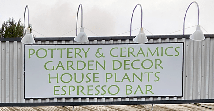 “Pottery & Ceramics, Garden Décor, House Plants and an Espresso Bar.” An Espresso Bar in a Ceramics shop? What do you bet the ceramics shop will serve their drinks in paper cups?
