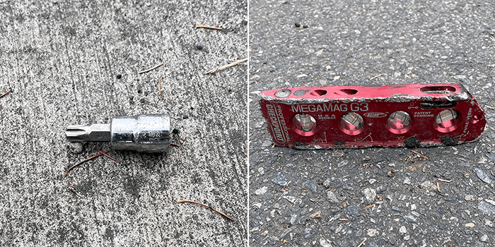 We found two of the devices today and opened them up when we got home. Besides the very intense scent of peaches and “candy floss”, whatever that is, they each contained a battery. These companies are selling items with batteries intended to be disposed of in landfills. And these users didn’t even do that. They just tossed them out the car window. Ruin your lungs, not the environment. If someone wanted to disassemble and recycle the batteries and other parts, these two required a pair of pliers and wire cutters, not exactly easy to recycle. Great job, guys.