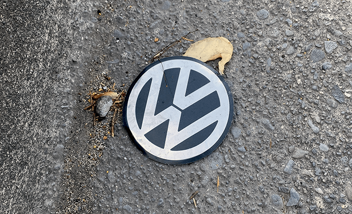 It had been held on with some type of tape, still adhering to the emblem. VW has gone downhill since their heavy-metal muscle cars of the sixties.
