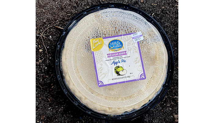 Someone purchased a pie at Safeway and, inexplicably, left it by the parking lot.