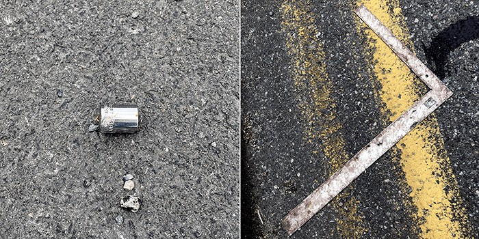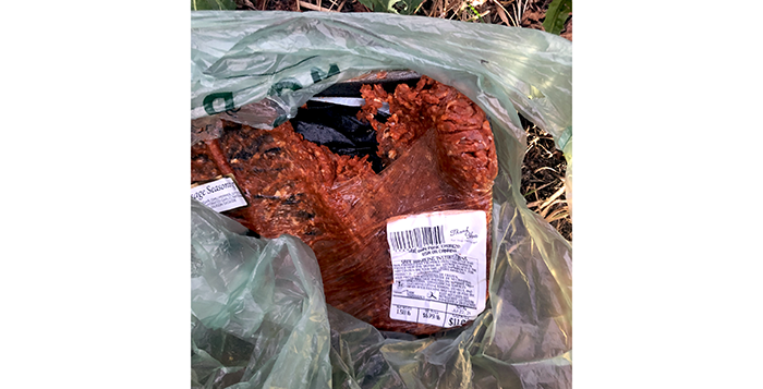 The helpful road crew pointed it out to us with a large arrow. We retrieved what we could and it turned out to be a bag of pork chorizo.