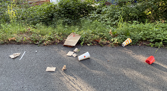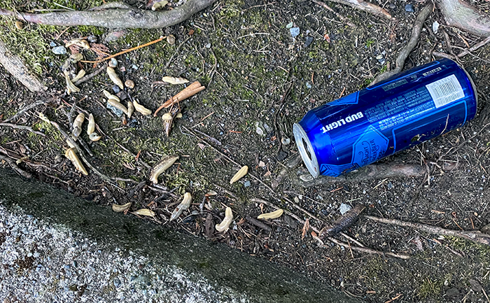 Our ideal walking temperature is 55°F (13°C), today was it was 70°F (21°C), very warm. However, it was overcast, and the sun never made it through, so it was warm but not unbearable. However, we missed last Saturday and there was a massive amount of trash. It seemed to be more than double. At our normal spot at the apartments on Woodinville Drive, we dumped seven bags of garbage and recycle. Normally it is two or three. Woof!