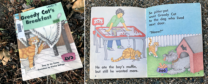 Book Review: We found the book mildly engaging, but the focus on greed is an all-too-obvious reference to the likes of Jeff Bezos. And the cat doesn’t look anything like him. Two stars, only because this is a level seven book, otherwise, one star.
