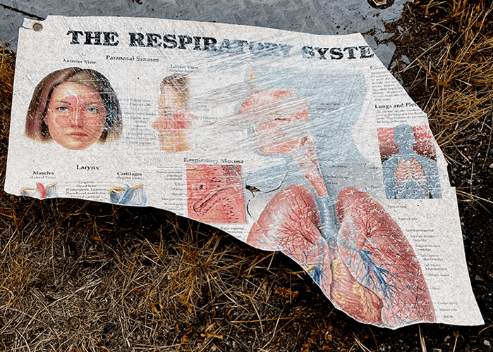 Toward the end of our walk on the freeway offramp, we found a Respiratory System Chart.