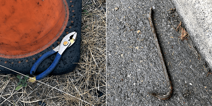 A pair of pliers that were not run over and a small crowbar that may have been run over, but so what, it’s a crowbar.