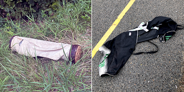 On Saturday after our walk down the hill into Bothell, we were running an errand and spotted what looked to be a McLitterer bag that wasn’t there when we walked. Later, we walked down to retrieve it.