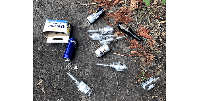 Near the end of Brickyard Road, there is a bus stop with a ditch behind it. Periodically, as trash from a nearby Jackon’s service station builds up, we dive in to clean it out.