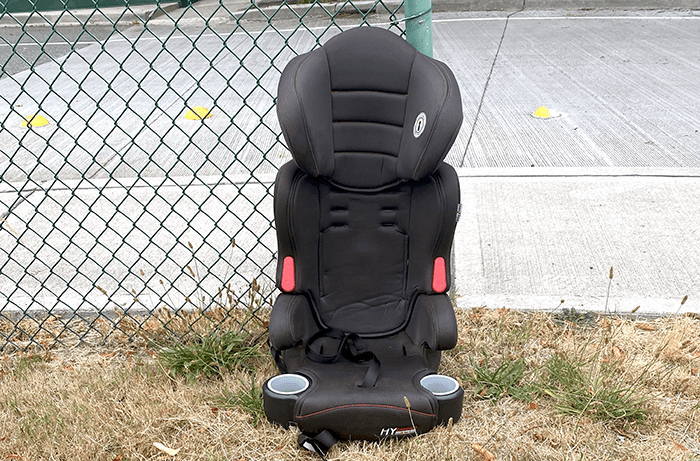 For several weeks, a Home Depot shopping cart was at the park-and-ride. Today it was gone but replaced by a child seat.