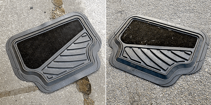 They were about a block apart. We are guessing someone washed them and left them on the tailgate or bumper to dry. They are in our Goodwill pile now.