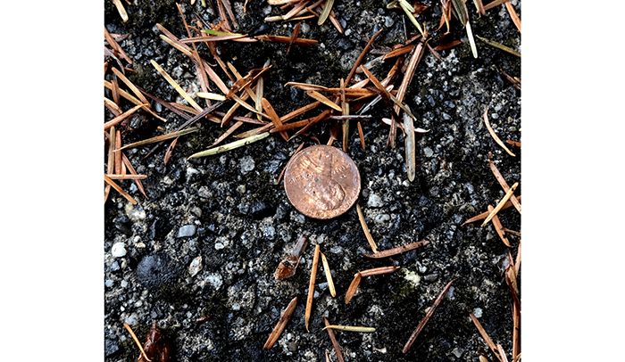 “Cigarette butts sleep with the fishes.” But not the money. We started the week with a penny by a school bus stop.
