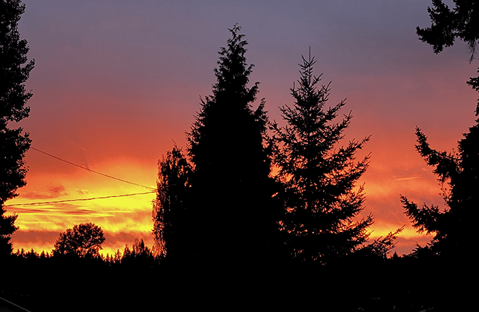Our walks now start in dark with flashlights on. As our walk progresses, the sky lightens, and we eventually arrive home in the daylight, sunny or overcast. This morning was one of those very rare days when we were reworded with a spectacular sunrise.
