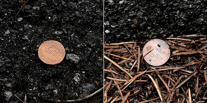 Two separate shiny pennies. It almost makes up for the bottle of urine. Almost.