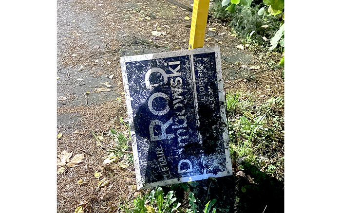 Rod Dembowski. This guy just ran for reelection to the King County Council and won. However, this sign is much older than this election. He also has left several new signs along our route, and we’ve taken note. We will let him pick this one up too. He will probably not want to reuse it in the next election.